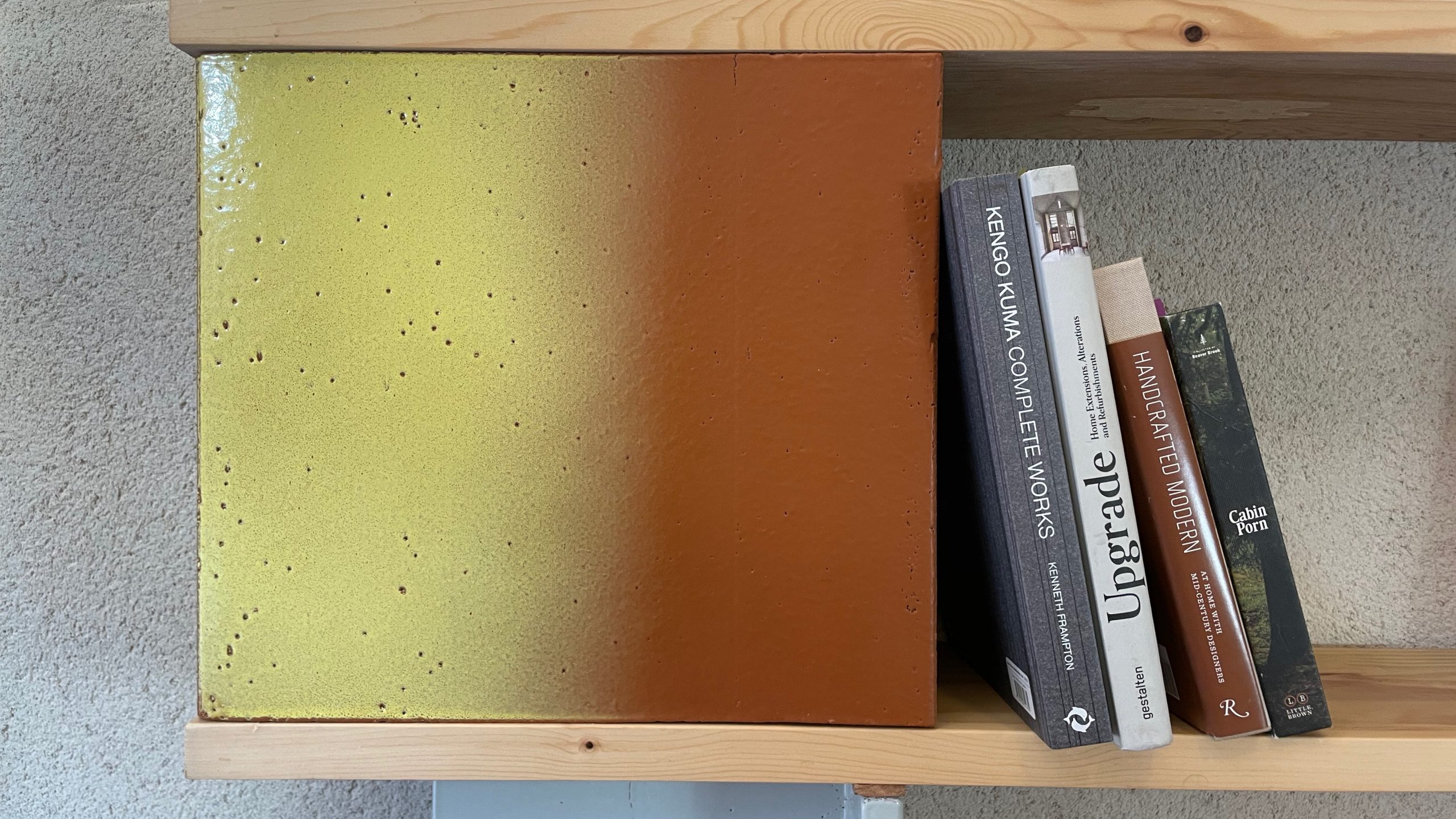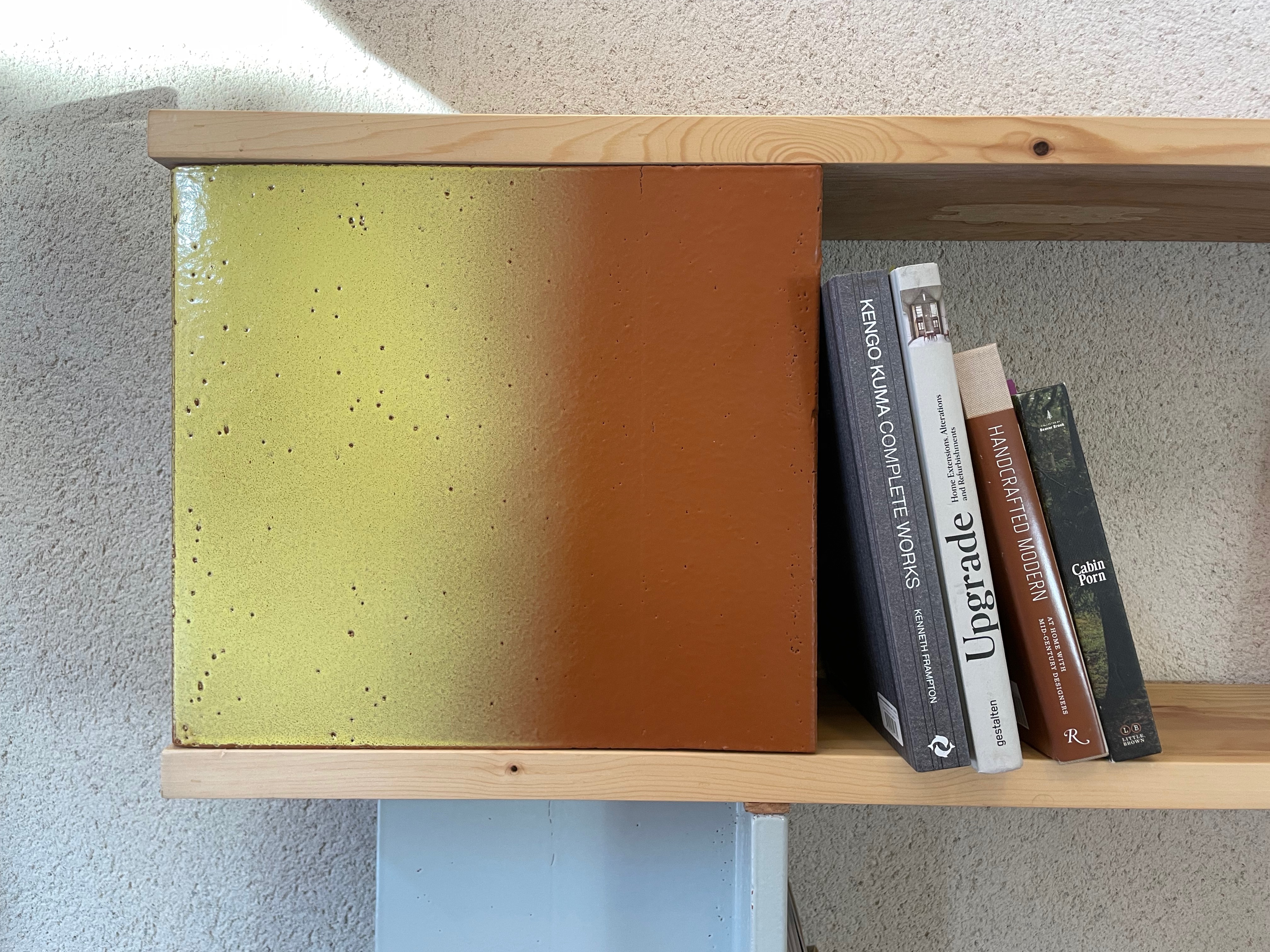 Categories:> Design Biblio TC5 Design de bibliothèque en terre-cuite Design / Réalisation Matériaux : Pin massif et contrecollé, terre cuite émaillée Dimensions : L250xP22xH176 cm 2025